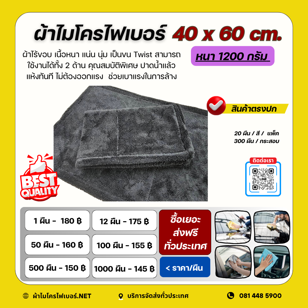 40x60 cm. ผ้าไมโครไฟเบอร์ รุ่น Extra Dry หนา 1200 กรัมปาดน้ำแล้วแห้งสนิทเลย ไม่ต้องเช็ดซ้ำ ช่่วยเบาแรงในการล้าง