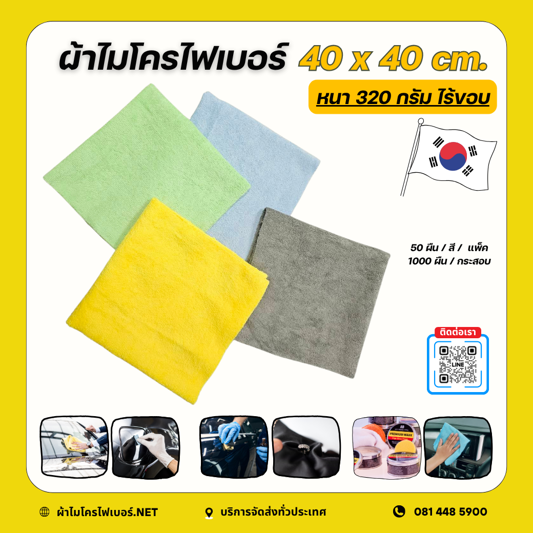 40 x 40 cm. ผ้าไมโครไฟเบอร์ ผ้าไร้ขอบ หนา 300 กรัม Edgeless Mirofiber
