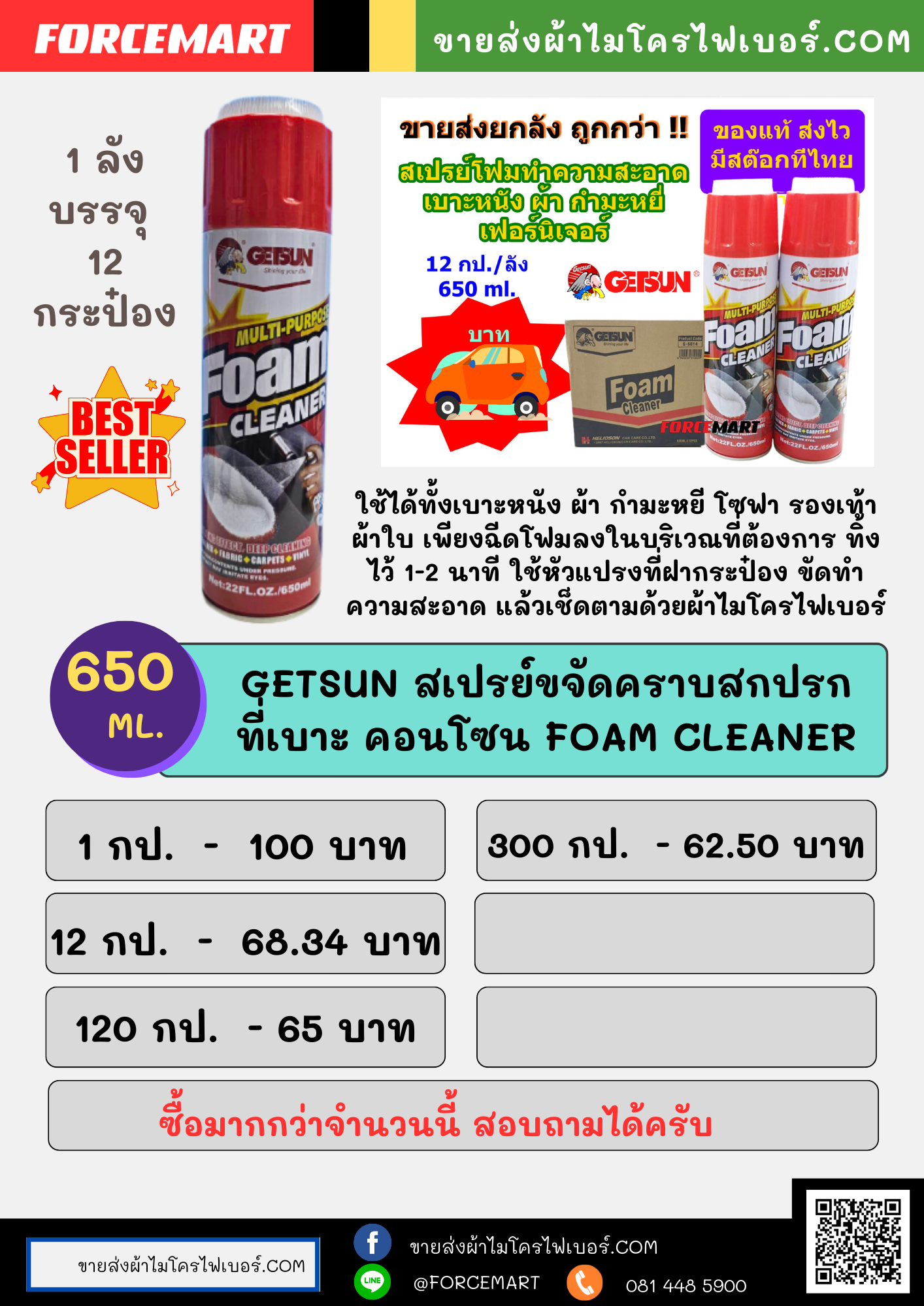 ใช้ได้ทั้งเบาะหนังและผ้ากำมะหยี โชฟา รองเท้าผ้าใบ เพียงฉีดโฟมลงในบริเวณที่ต้องการ ทิ้งไว้ 1-2 นาทีใช้หัวแปรงที่หัวกระป๋องจัดทำความสะอาด แล้วเช็ดตามด้วยผ้าไมโครไฟเบอร์