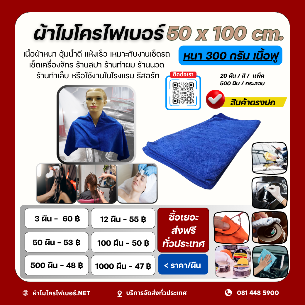 50 x 1000 cm. ผ้าไมโครไฟเบอร์ เนื้อฟู หนา 300 กรัม