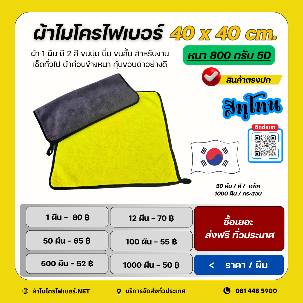 40 x 40 cm. ผ้าไมโครไฟเบอร์ ทูโทน กุ๊นขอบ 5D หนา 800 กรัม